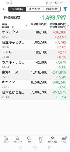 日本株の保有状況です。 前日よりマイナス124450円です。 (´Д`)ハァ… 日本たばこ産業の下げが酷いです。 紙巻きたばこの売上が減っている。 アイコスとかオシャレですよね。 プルームテックより。 我慢比べかな。