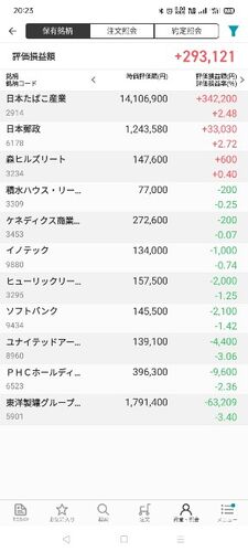 日本株とリートの保有状況です。 前日よりマイナス111080円です。 本日の約定はなし。 今日は日経平均株価も保有株も下がりました。 昨日のアメリカ市場の煽りを受けて、前場売却大きく下がりましたが、後場には少し戻しました。 何とか踏みとどまっている感…