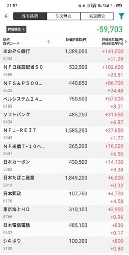 日本株の保有状況です。 含み益 含み損 先週よりマイナス30,075円です。 今日、日経平均株価は上がりましたが、保有株は下がりました。 本日の約定はなし。 前場は含み益にもなっていましたが、結局、含み損で終わりました。 夏枯れ続いているのかな。 自分…