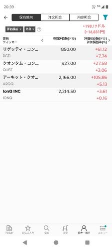 米国株の保有状況です。 調子にのって、久々に米国株に手を出してしまいました。 量子コンピュータ銘柄。 これもそれも、『三体』やNHKの番組の『量子もつれ』を読んだり、観たりしたせいです。 また痛い目に合わなければ良いですが・・・ 良いお年を。